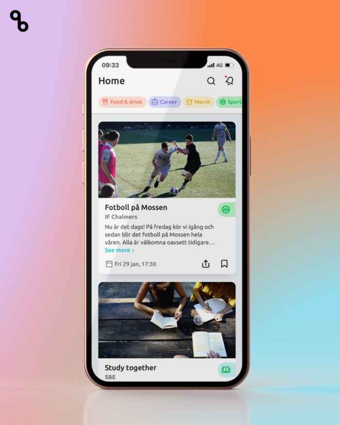 Genom Orbis app, eller här på studentlivet.se kan studenten hitta event, information och karriär-relaterat innehåll baserat på data man anger vid registrering eller väl inne i appen.